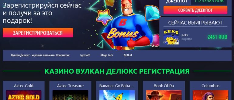 Бездепозитное казино Вулкан Делюкс дает возможность сыграть в казино на реальные деньги. Игровой клуб отличается тем, что предлагает своим игрокам широкий ассортимент слотов, из числа которых геймеру обязательно