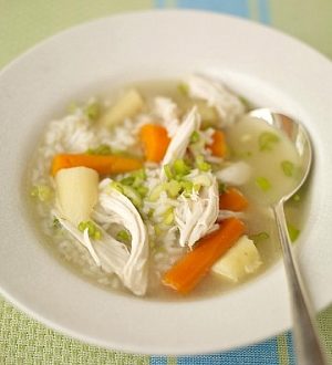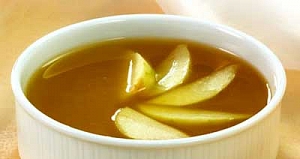 Ингридиенты: 100 г яблок или груш, 2 стакана воды, 1 ст. л. риса, 50 г молока, 2 ст. л. сахара. Описание: Залейте фрукты горячей водой, добавьте 1,5 ст.