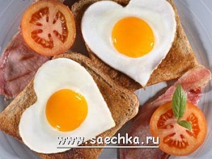 Афродизиаки: Яйца Другие Ингридиенты: багет или обычный хлеб майонез яйца маленькие помидорчики оливки без косточек зелень Описание: Срезать корочку с хлеба. Нарезать багет круглыми тонкими ломтиками, вырезать сердечки.