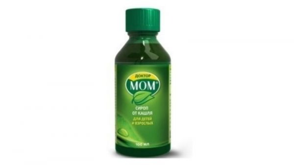 Популярный сироп, который содержит натуральные компоненты. Основу препарата составляют 9 экстрактов лекарственных трав и ментол, облегчающий дыхание. Доктор Мом – сироп от кашля для детей старше 3 лет. Компоненты средства могут вызвать аллергическую реакцию, поэтому перед началом приема следует исключить непереносимость состава.