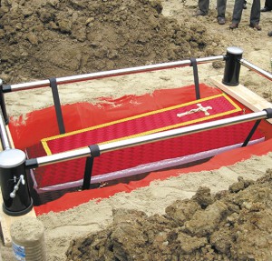 Закрытый красный гроб