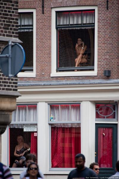 Весь товар квартала Красных фонарей можно заказать на вынос, в каждом окошке афишка с телефоном. Иногда девушка на глазах у зрителей хватает трубку сотового телефона, принимает вызов, быстренько одевается и выбегает ловить такси.